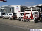 Durch dessen Vermietung ermöglichen wir es unseren Kunden zukünftig Bühnen bis zu einem Gewicht von 2420 kg selbst abzuholen. Die Auf- und Abladung der Bühnen wird durch seine hydraulische Pumpfunktion und Absenkfunktion stark erleichtert.