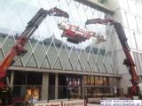 Die Mitarbeiter der FA. STRABAG Property & Facility nutzten ihn von dort aus, um Ihre Reinigungsarbeiten sicher und in jedem Winkel der hohen Fensterfront durchführen zu können.